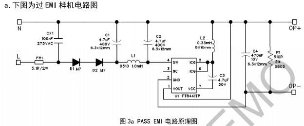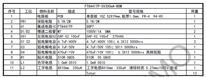 FT8441TP非隔離5V300mA電源芯片DEMO板參考設計(過EMI方案)