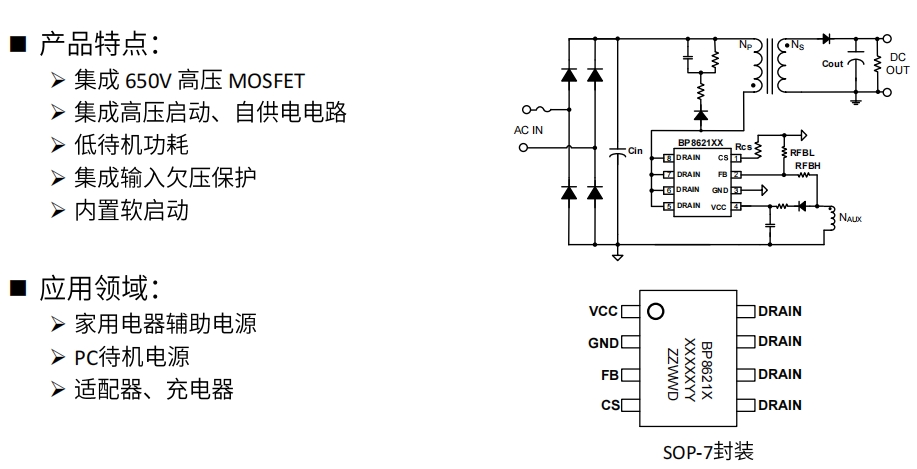 BP86216P 是由晶豐明源(BrightPower Semiconductor)推出的一款高性能電源管理芯片,專為中小功率電源適配器設(shè)計(jì)。它集成了 650V MOSFET,并采用先進(jìn)的控制技術(shù),能夠?qū)崿F(xiàn)高效率、低待機(jī)功耗和優(yōu)異的動(dòng)態(tài)響應(yīng)。