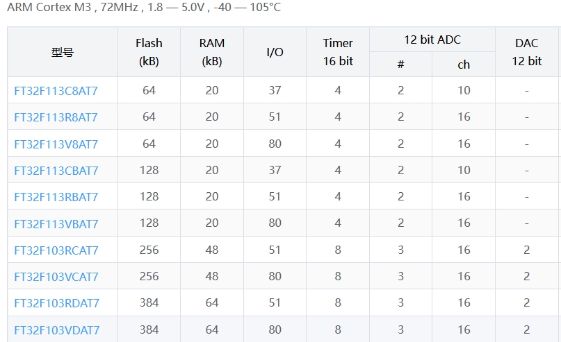 (本文按 Flash/RAM 從小到大排列)