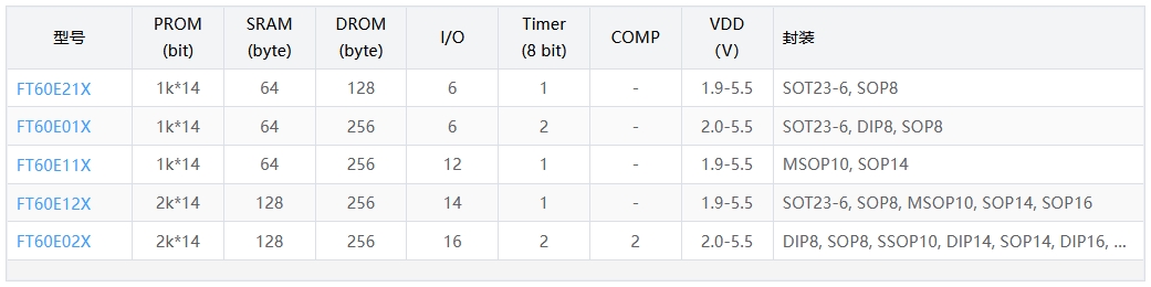 例如:FT60F21X ? FT60E21X,只是 DROM 擦寫壽命從 100 k 提升到 1 000 k,價(jià)格貴 3~5 分錢。
