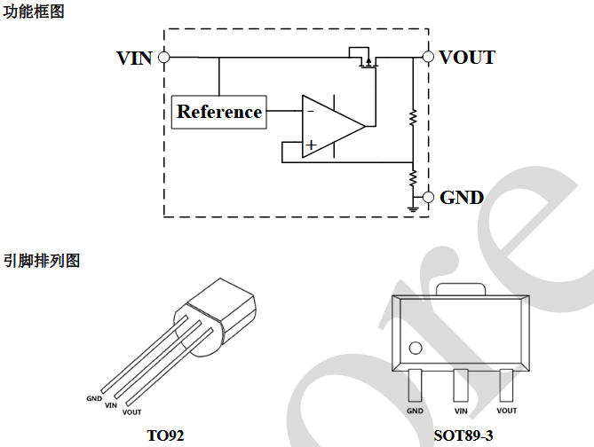 | TO-92 | GND | VIN | VOUT | 直插,13.5 mm 腳距 |