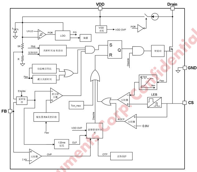 • 全保護:OVP/UVLO/OCP/OTP,全部自恢復