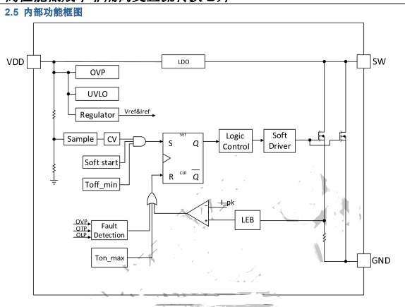 ◆ 內置高壓啟動電路,電流、電壓采樣電路